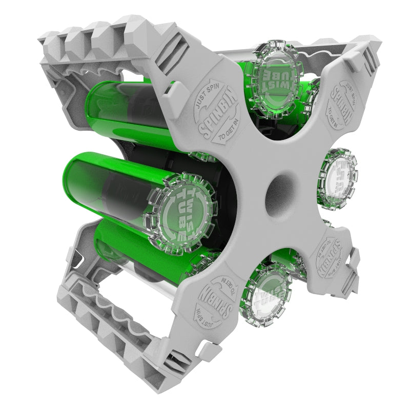 SpinBINS are a REVOLUTION in Organization. This rotating and expandable rack system grows with your needs. Holding 8 TwisTUBES in this rugged organizer is just the begiinning. Tubes open in place or POP out for use else where. SpinBINS Rack together and stack neatly to save serious work space yet all your contents are instantly accesible. No labels needed and SpinBINS are super mobile for projects on the go...